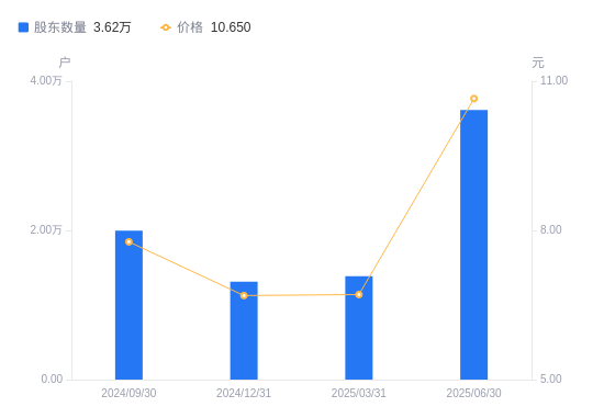 近一年(2024年6月30日至2025年6月30日),时代万恒A股股东户数从1.63万户,增加至3.62万户,增幅121.76%,区间股价上涨91.55%。