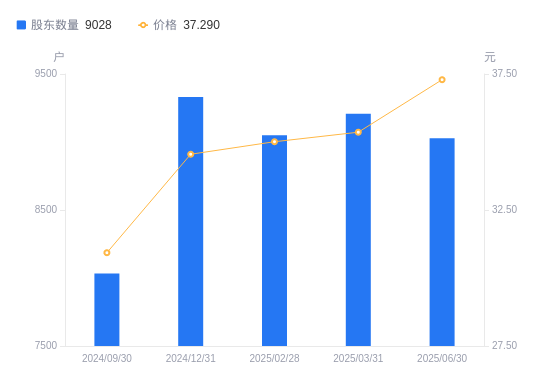 8月25日消息,数据显示,截至2025年6月30日,汇通能源A股股东总户数为9028户,较上期(2025年3月31日)减少179户,降幅1.94%。公司最新A股总股本为2.06亿股,其中流通A股2.06亿股,户均持有流通A股数量为2.28万股,较上期增加444.23股,增幅1.98%;户均持流通A股市值85.2万元,较上期增加5.98万元,增幅7.55%。