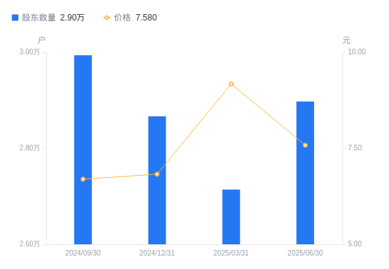 8月25日消息,数据显示,截至2025年6月30日,派斯林A股股东总户数为2.9万户,较上期(2025年3月31日)增加1833户,增幅6.75%。公司最新A股总股本为4.63亿股,其中流通A股4.57亿股,户均持有流通A股数量为1.58万股,较上期减少1064.96股,降幅6.33%;户均持流通A股市值11.95万元,较上期减少3.49万元,降幅22.61%。