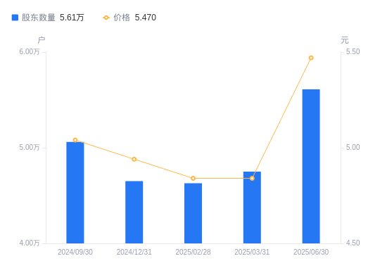 近一年(2024年6月30日至2025年6月30日),银星能源A股股东户数从5.11万户,增加至5.61万户,增幅9.89%,区间股价上涨14.68%。
