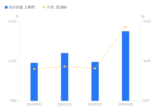 近一年(2024年6月30日至2025年6月30日),工大科雅A股股东户数从1.23万户,增加至1.8万户,增幅47.29%,区间股价上涨77.20%。