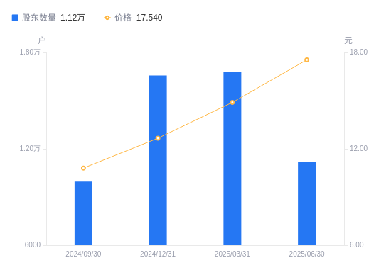 近一年(2024年6月30日至2025年6月30日),诺邦股份A股股东户数从9589户,增加至1.12万户,增幅16.68%,区间股价上涨81.57%。