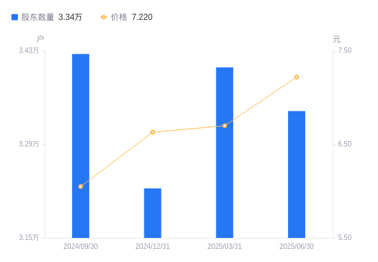8月26日消息,数据显示,截至2025年6月30日,正虹科技(维权)A股股东总户数为3.34万户,较上期(2025年3月31日)减少655户,降幅1.92%。公司最新A股总股本为3.47亿股,其中流通A股2.67亿股,户均持有流通A股数量为7983.55股,较上期增加153.56股,增幅1.96%;户均持流通A股市值5.76万元,较上期增加5180.31元,增幅9.87%。