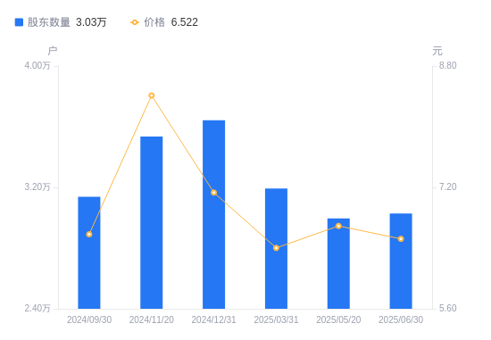 近一年(2024年6月30日至2025年6月30日),水发燃气A股股东户数从3.33万户,减低至3.03万户,降幅9.17%,区间股价上涨17.87%。