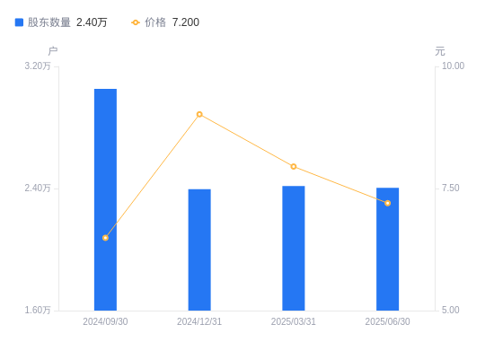 近一年(2024年6月30日至2025年6月30日),亚通股份A股股东户数从2.86万户,减低至2.4万户,降幅15.92%,区间股价上涨36.88%。