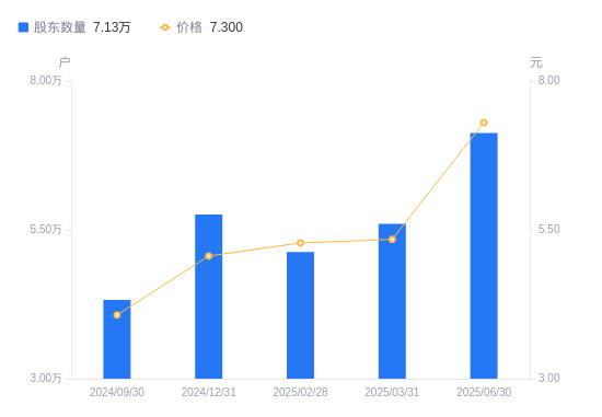 近一年(2024年6月30日至2025年6月30日),国风新材A股股东户数从4.81万户,增加至7.13万户,增幅48.25%,区间股价上涨113.45%。