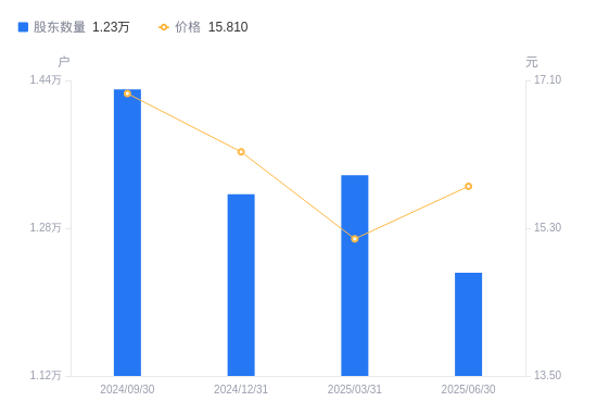 近一年(2024年6月30日至2025年6月30日),粤万年青A股股东户数从1.51万户,减低至1.23万户,降幅18.26%,区间股价上涨13.74%。