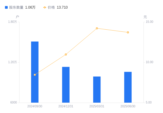近一年(2024年6月30日至2025年6月30日),皮阿诺A股股东户数从1.42万户,减低至1.06万户,降幅25.51%,区间股价上涨89.52%。
