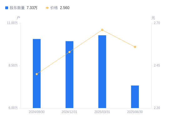 近一年(2024年6月30日至2025年6月30日),*ST四环A股股东户数从10.1万户,减低至7.33万户,降幅27.40%,区间股价上涨29.29%。