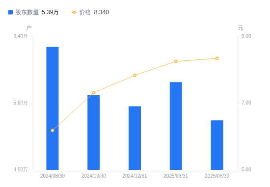 近一年(2024年6月30日至2025年6月30日),多伦科技A股股东户数从7.78万户,减低至5.39万户,降幅30.73%,区间股价上涨17.80%。