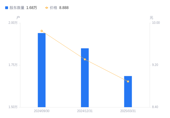 近一年(2024年6月30日至2025年6月30日),金鹰重工A股股东户数从1.99万户,减低至1.94万户,降幅2.92%,区间股价上涨33.08%。