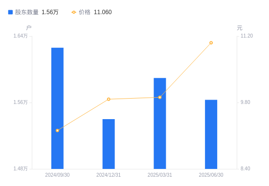 近一年(2024年6月30日至2025年6月30日),金海高科A股股东户数从1.76万户,减低至1.56万户,降幅11.40%,区间股价上涨32.93%。