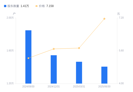 近一年(2024年6月30日至2025年6月30日),ST智知A股股东户数从2.01万户,减低至1.41万户,降幅30.15%,区间股价上涨64.63%。