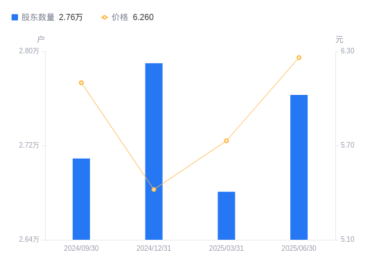 近一年(2024年6月30日至2025年6月30日),宏柏新材A股股东户数从2.83万户,减低至2.76万户,降幅2.26%,区间股价上涨8.49%。