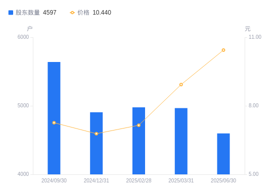 近一年(2024年6月30日至2025年6月30日),*ST佳沃A股股东户数从5488户,减低至4597户,降幅16.24%,区间股价上涨66.51%。