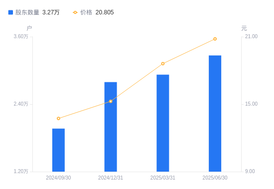 近一年(2024年6月30日至2025年6月30日),诚益通A股股东户数从1.72万户,增加至3.27万户,增幅89.76%,区间股价上涨39.12%。