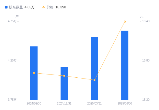 8月26日消息,数据显示,截至2025年6月30日,传艺科技A股股东总户数为4.63万户,较上期(2025年3月31日)增加795户,增幅1.75%。公司最新A股总股本为2.9亿股,其中流通A股1.81亿股,户均持有流通A股数量为3914.71股,较上期减少68.39股,降幅1.72%;户均持流通A股市值7.2万元,较上期增加8222.13元,增幅12.89%。