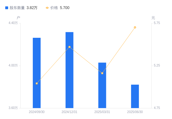 近一年(2024年6月30日至2025年6月30日),瑞丰光电A股股东户数从4.04万户,减低至3.82万户,降幅5.53%,区间股价上涨39.71%。