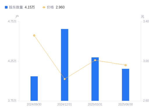 8月26日消息,数据显示,截至2025年6月30日,珠海中富A股股东总户数为4.15万户,较上期(2025年3月31日)减少1441户,降幅3.35%。公司最新A股总股本为12.86亿股,其中流通A股12.86亿股,户均持有流通A股数量为3.1万股,较上期增加1037.77股,增幅3.47%;户均持流通A股市值9.16万元,较上期增加1576.08元,增幅1.75%。