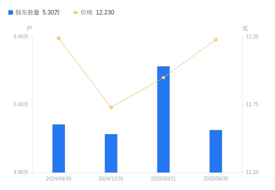 8月26日消息,数据显示,截至2025年6月30日,大富科技A股股东总户数为5.3万户,较上期(2025年3月31日)减少7522户,降幅12.43%。公司最新A股总股本为7.67亿股,其中流通A股6.94亿股,户均持有流通A股数量为1.31万股,较上期增加1627.05股,增幅14.19%;户均持流通A股市值16.01万元,较上期增加2.31万元,增幅16.87%。