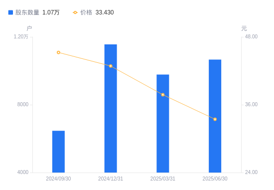 近一年(2024年6月30日至2025年6月30日),浩洋股份A股股东户数从5732户,增加至1.07万户,增幅86.03%,区间股价下跌25.88%。