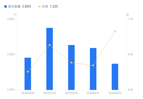 近一年(2024年6月30日至2025年6月30日),安道麦AA股股东户数从2.78万户,减低至2.59万户,降幅6.71%,区间股价上涨59.03%。