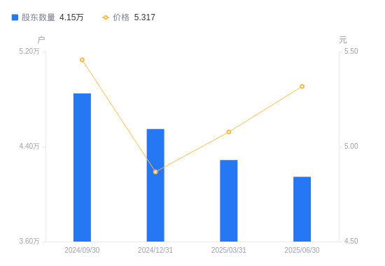 近一年(2024年6月30日至2025年6月30日),万年青A股股东户数从4.92万户,减低至4.15万户,降幅15.79%,区间股价上涨20.92%。