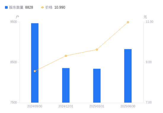 近一年(2024年6月30日至2025年6月30日),好莱客A股股东户数从9756户,减低至8828户,降幅9.51%,区间股价上涨51.13%。