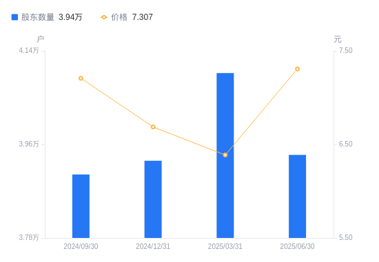 近一年(2024年6月30日至2025年6月30日),中牧股份A股股东户数从3.7万户,增加至3.94万户,增幅6.35%,区间股价下跌0.56%。
