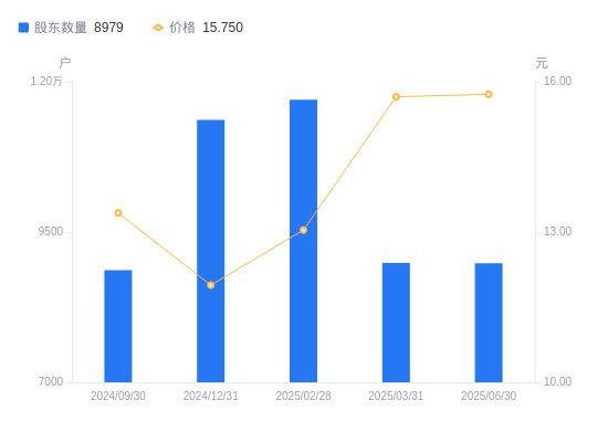 近一年(2024年6月30日至2025年6月30日),长鸿高科A股股东户数从8571户,增加至8979户,增幅4.76%,区间股价上涨20.23%。
