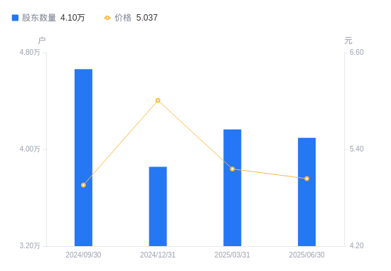 近一年(2024年6月30日至2025年6月30日),中闽能源A股股东户数从5.18万户,减低至4.1万户,降幅20.92%,区间股价上涨7.93%。