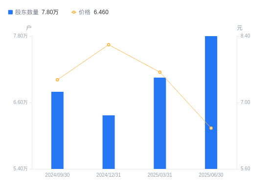 近一年(2024年6月30日至2025年6月30日),彩虹股份A股股东户数从7.01万户,增加至7.8万户,增幅11.29%,区间股价下跌5.14%。