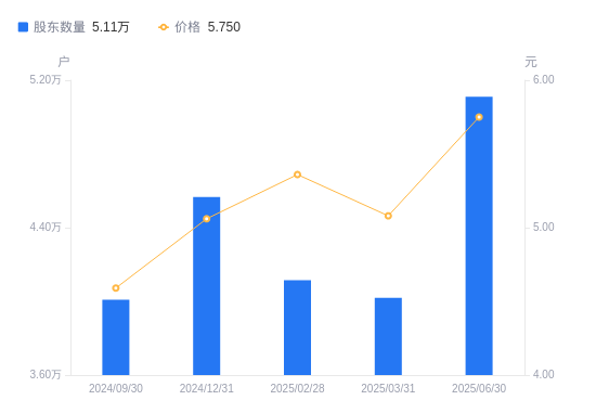 8月27日消息,数据显示,截至2025年6月30日,两面针A股股东总户数为5.11万户,较上期(2025年3月31日)增加1.09万户,增幅27.15%。公司最新A股总股本为5.5亿股,其中流通A股5.5亿股,户均持有流通A股数量为1.08万股,较上期减少2921.9股,降幅21.35%;户均持流通A股市值6.19万元,较上期减少7632.89元,降幅10.98%。