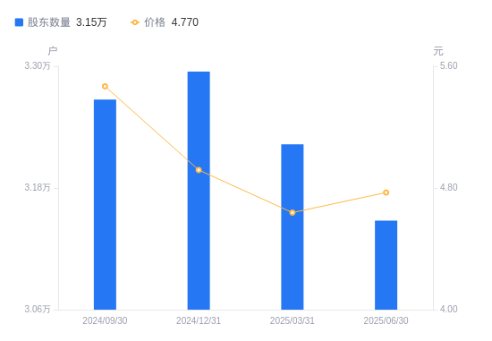 近一年(2024年6月30日至2025年6月30日),宝钢包装A股股东户数从3.29万户,减低至3.15万户,降幅4.36%,区间股价上涨3.54%。