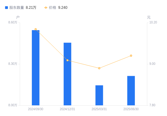 近一年(2024年6月30日至2025年6月30日),航天信息A股股东户数从8.72万户,减低至8.21万户,降幅5.83%,区间股价上涨25.61%。