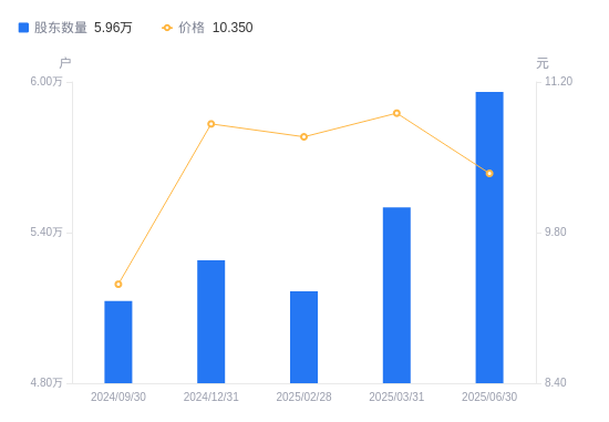 近一年(2024年6月30日至2025年6月30日),莱宝高科A股股东户数从5.15万户,增加至5.96万户,增幅15.78%,区间股价下跌4.17%。