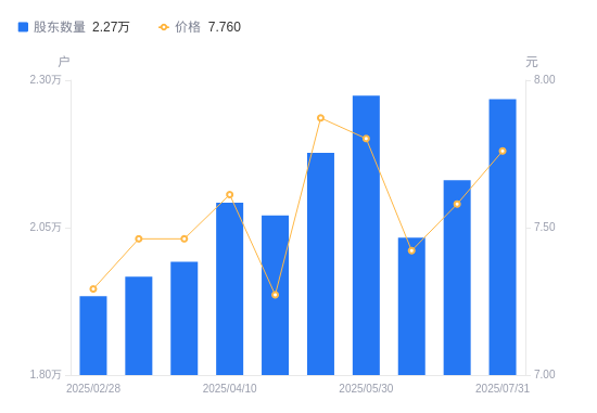 8月27日消息,数据显示,截至2025年6月30日,溢多利A股股东总户数为2.03万户,较上期(2025年5月30日)减少2409户,降幅10.59%。公司最新A股总股本为4.91亿股,其中流通A股4.89亿股,户均持有流通A股数量为2.41万股,较上期增加2550.23股,增幅11.85%;户均持流通A股市值17.87万元,较上期增加1.07万元,增幅6.40%。