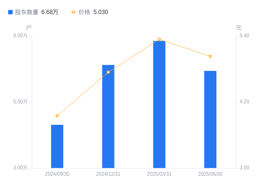 8月27日消息,数据显示,截至2025年6月30日,福石控股A股股东总户数为6.68万户,较上期(2025年3月31日)减少1.14万户,降幅14.53%。公司最新A股总股本为9.64亿股,其中流通A股9.45亿股,户均持有流通A股数量为1.42万股,较上期增加2056.42股,增幅17.00%;户均持流通A股市值7.12万元,较上期增加6592.95元,增幅10.20%。