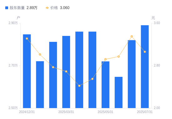 8月27日消息,数据显示,截至2025年6月30日,国创高新A股股东总户数为2.65万户,较上期(2025年5月31日)减少730户,降幅2.68%。公司最新A股总股本为9.16亿股,其中流通A股8.72亿股,户均持有流通A股数量为3.29万股,较上期增加883.82股,增幅2.76%;户均持流通A股市值9.78万元,较上期增加4227.31元,增幅4.52%。
