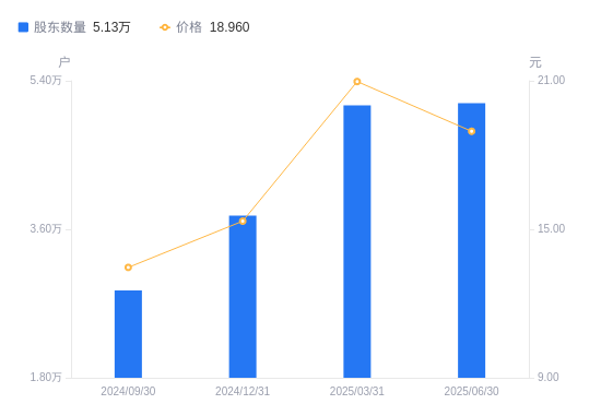 近一年(2024年6月30日至2025年6月30日),南兴股份A股股东户数从2.94万户,增加至5.13万户,增幅74.75%,区间股价上涨64.16%。
