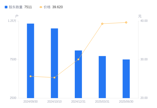 近一年(2024年6月30日至2025年6月30日),同力日升A股股东户数从1.31万户,减低至7511户,降幅42.47%,区间股价上涨64.47%。