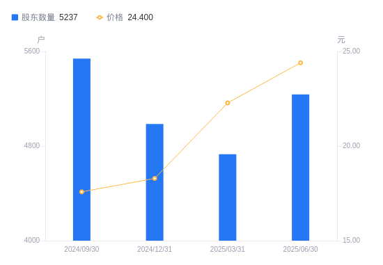 近一年(2024年6月30日至2025年6月30日),瑞晨环保A股股东户数从5404户,减低至5237户,降幅3.09%,区间股价上涨56.71%。