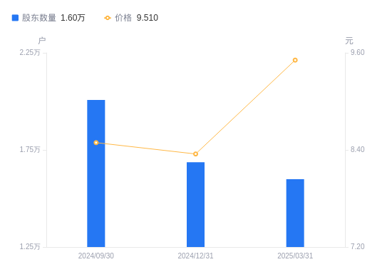 近一年(2024年6月30日至2025年6月30日),*ST生物A股股东户数从2.28万户,减低至1.32万户,降幅41.97%,区间股价上涨38.12%。