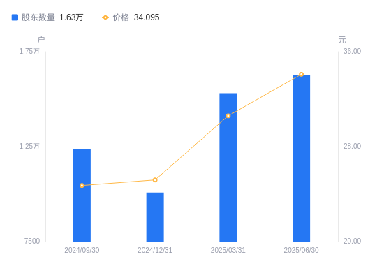 近一年(2024年6月30日至2025年6月30日),泓博医药A股股东户数从1.38万户,增加至1.63万户,增幅17.63%,区间股价上涨54.30%。
