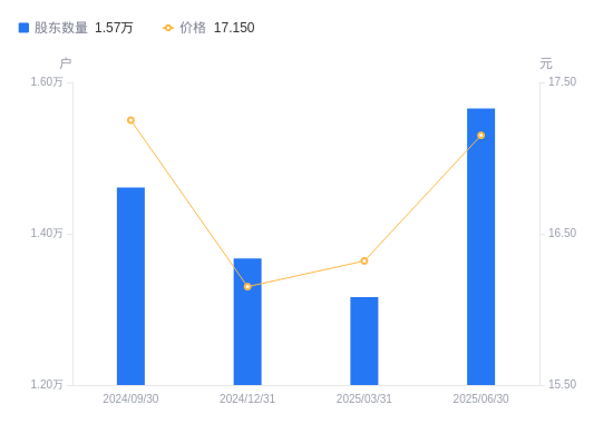 近一年(2024年6月30日至2025年6月30日),一彬科技A股股东户数从1.6万户,减低至1.57万户,降幅2.39%,区间股价上涨9.87%。