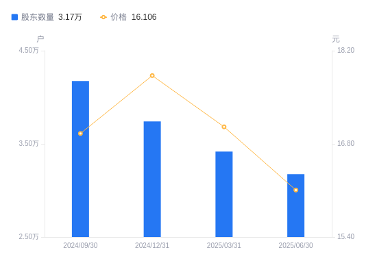 8月28日消息,数据显示,截至2025年6月30日,中视传媒A股股东总户数为3.17万户,较上期(2025年3月31日)减少2429户,降幅7.11%。公司最新A股总股本为3.98亿股,其中流通A股3.98亿股,户均持有流通A股数量为1.25万股,较上期增加890.52股,增幅7.65%;户均持流通A股市值20.18万元,较上期增加3286.64元,增幅1.66%。
