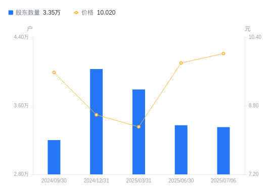 近一年(2024年6月30日至2025年6月30日),司太立A股股东户数从3.15万户,增加至3.37万户,增幅7.24%,区间股价上涨4.37%。