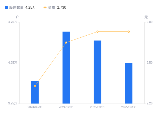 近一年(2024年6月30日至2025年6月30日),厦工股份A股股东户数从4.08万户,增加至4.25万户,增幅4.24%,区间股价上涨40.72%。