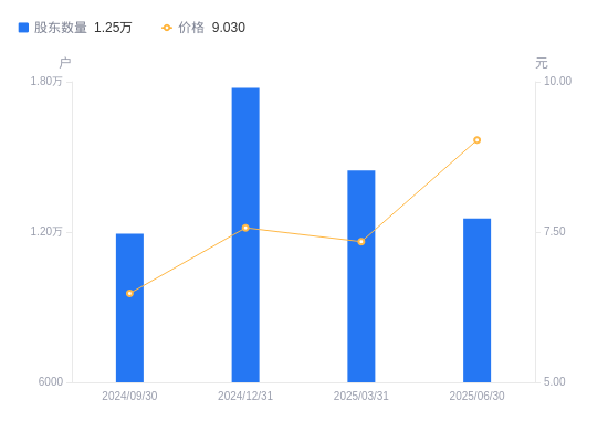 近一年(2024年6月30日至2025年6月30日),祥和实业A股股东户数从1.17万户,增加至1.25万户,增幅6.98%,区间股价上涨35.38%。