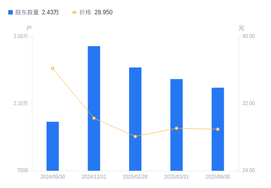 近一年(2024年6月30日至2025年6月30日),新天然气A股股东户数从1.96万户,增加至2.43万户,增幅24.30%,区间股价下跌14.45%。